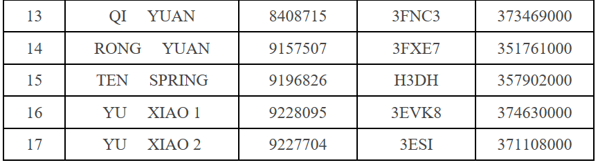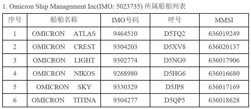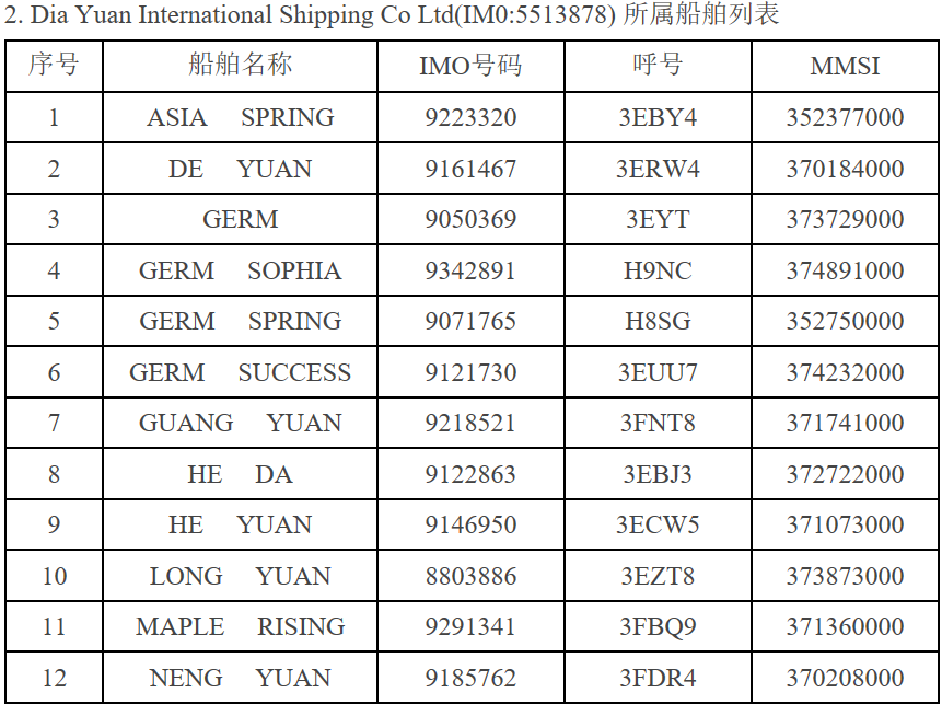 特此公告。相关航运公司所属船舶列表