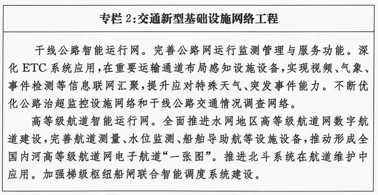 加快推进交通新基建,推动新技术与交通基础设施融合发展,赋能传统交通基础设施,推动交通基础设施数字转型、智能升级,提升基础设施安全保障能力和运行效率。