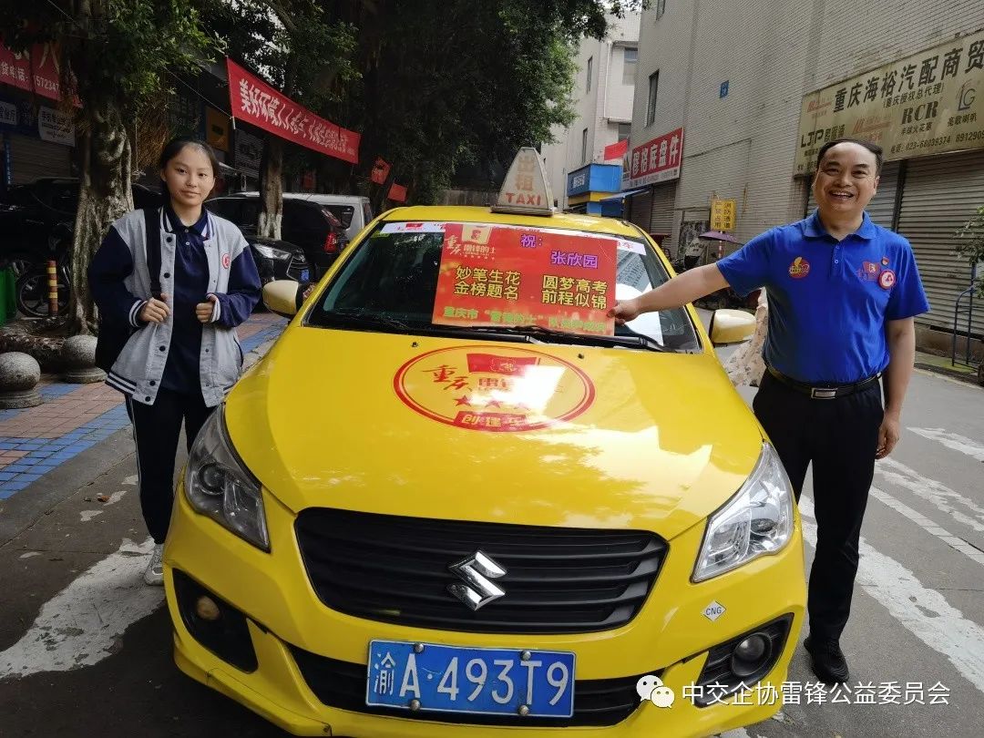 重庆市“雷锋的士”志愿服务队组织雷锋的士星级创建车为主城区范围内出行不便的考生提供安全、免费、优质、温馨、准时的便捷服务。