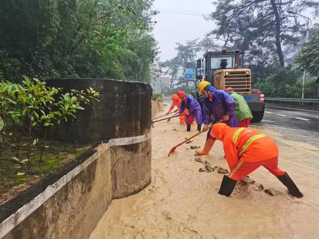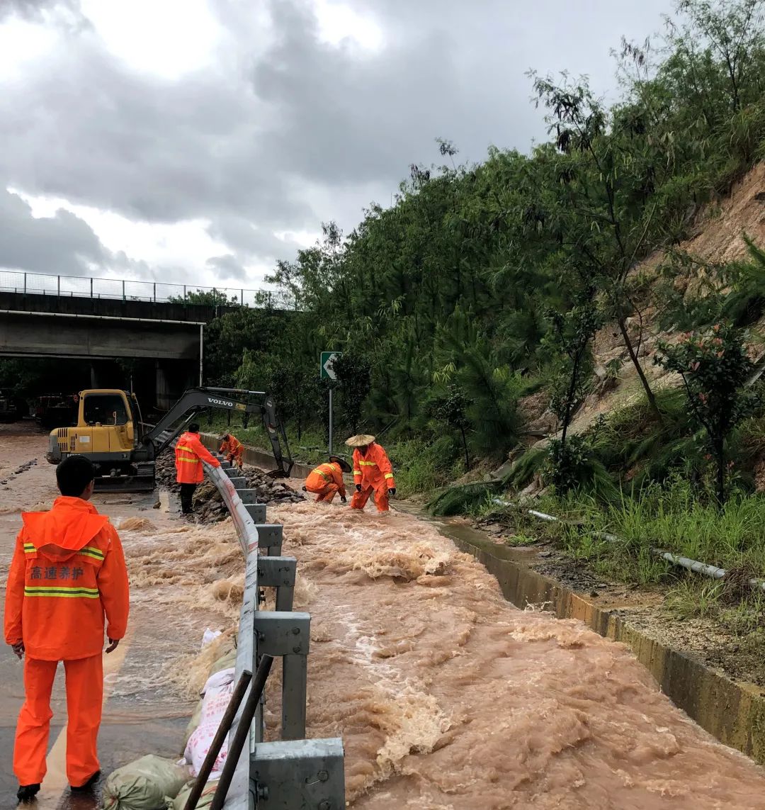 惠州多地交通中断,惠州交通运输部门提前设置安全标识标志,全力奋战,积极抢通。