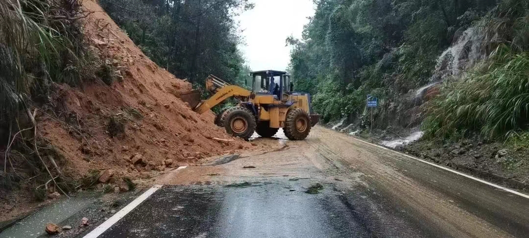 三明市清流县部分路段突发溜方,清流公路部门立即调集铲车,采取两端同时作业,紧急处置,保通保畅。