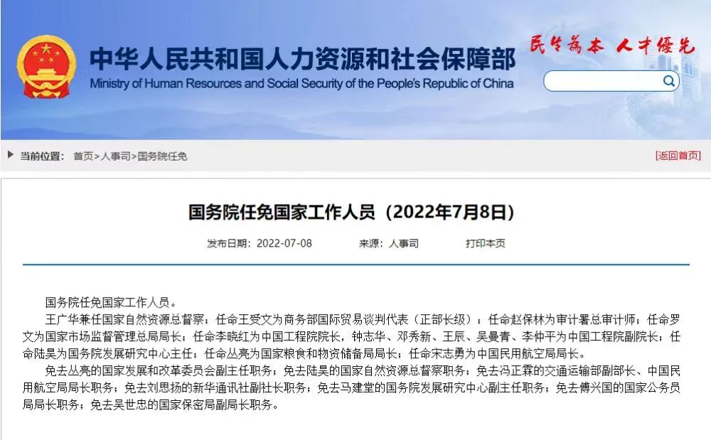 7月8日,国务院任免国家工作人员,任命宋志勇为中国民用航空局局长。免去冯正霖的交通运输部副部长、中国民用航空局局长职务。