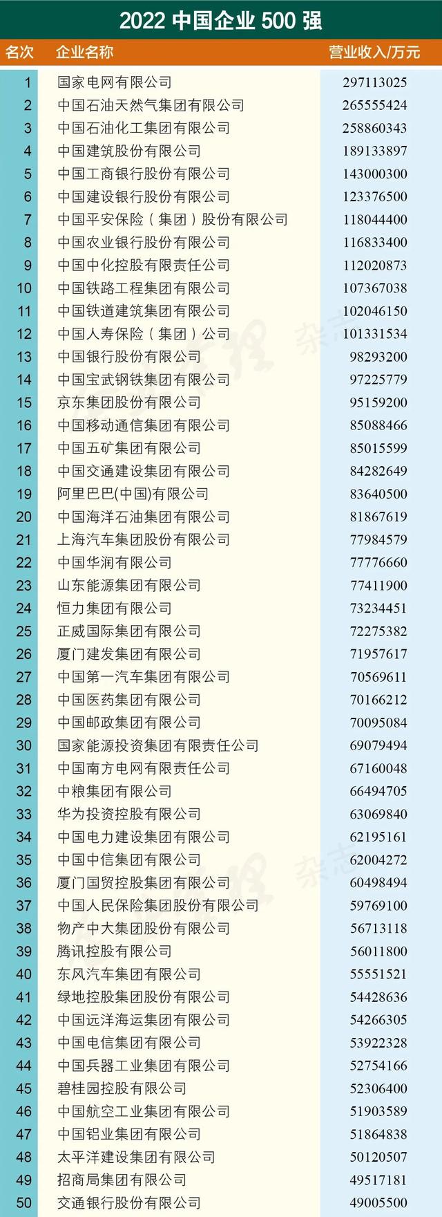 重磅发布!2022中国企业500强出炉(附完整榜单)