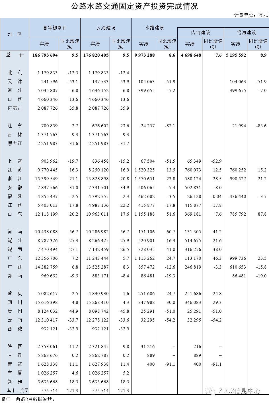 2022年1-8月公路水路交通固定资产投资完成情况