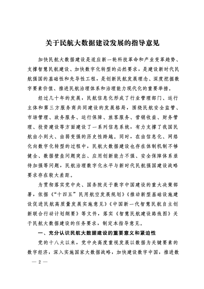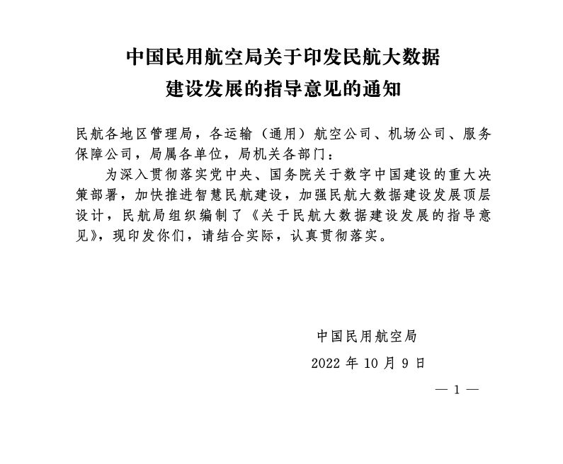 中国民用航空局关于印发民航大数据建设发展的指导意见的通知