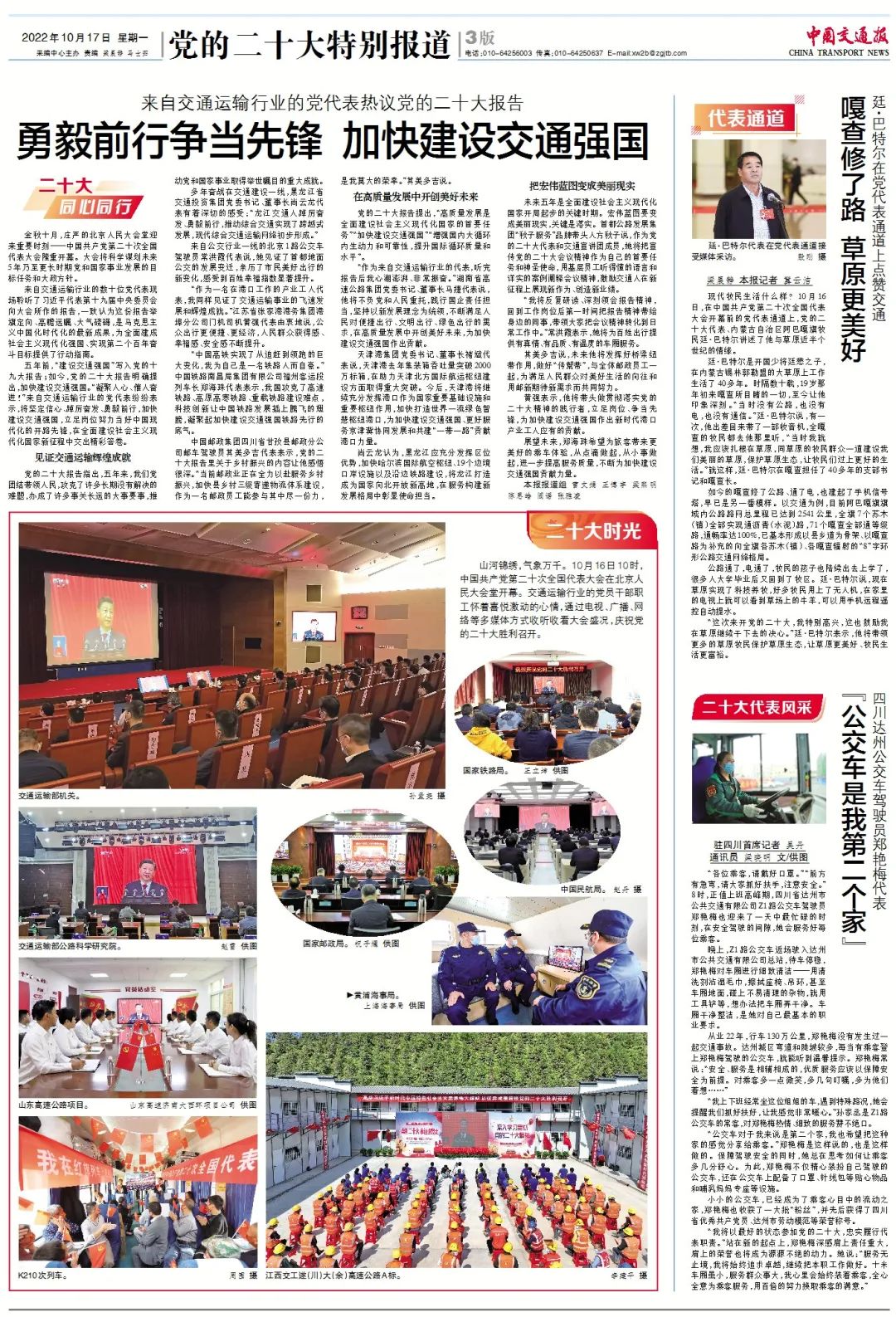 “我将以最好的状态参加党的二十大,忠实履行代表职责。”站在新的起点上,郑艳梅深感肩上责任重大,肩上的荣誉也将成为源源不绝的动力。她说:“服务无止境,我将始终追求卓越,继续把本职工作做好。十米车厢虽小,服务群众事大,我心里会始终装着乘客,全心全意为乘客服务,用百倍的努力换取乘客的满意。”