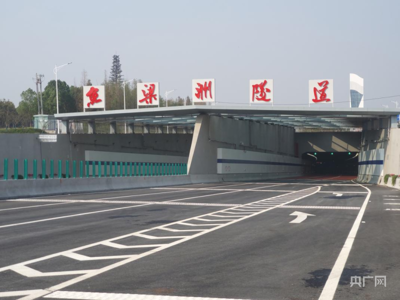 襄阳市襄江大道鱼梁洲隧道入口 (央广网记者 张卓 摄)