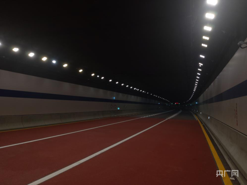 襄阳市襄江大道鱼梁洲隧道内部 (央广网记者 张卓 摄)