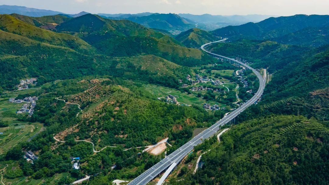青山巍巍,桥隧相连。云茂高速公路蜿蜒于绿野碧水间,使粤西山区内外连接的交通更加快速通畅,与沿线环境相映成趣,和谐自然,绘就绿色发展新画卷。