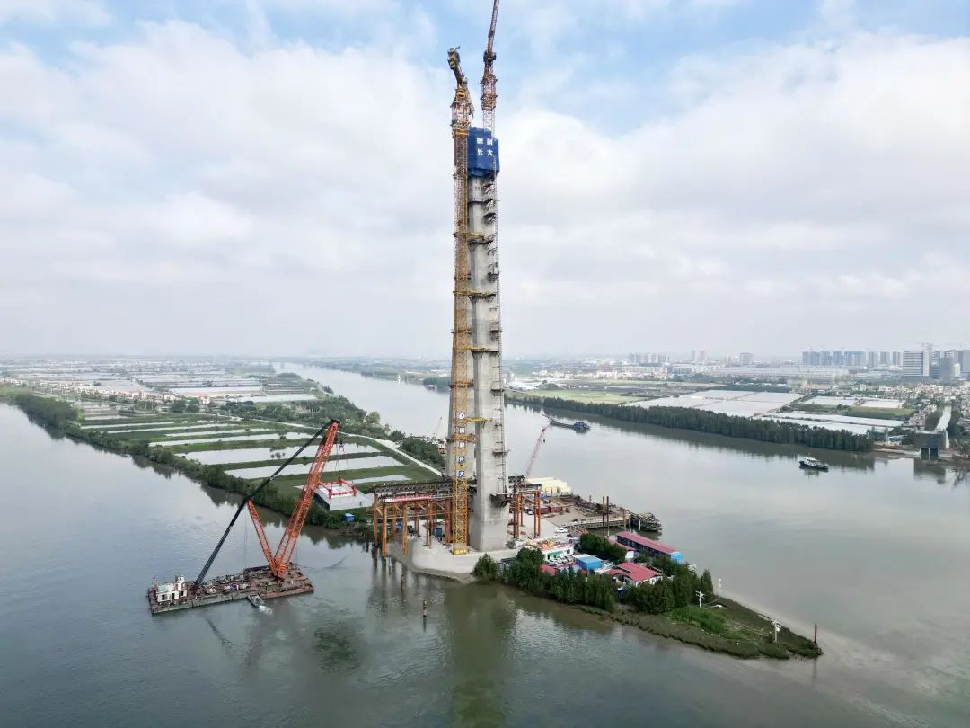 南中高速全长32.4公里,主线横跨广州、中山两市,南通珠海、西进江门、东达东莞,支线与深中通道无缝对接,可通达深圳。横门西特大桥是南中高速的控制性工程,采用独塔双索面半漂浮体系钢箱梁斜拉桥结构,是国内在建的最大跨径独塔整体式钢箱梁斜拉桥。大桥全长912米,主跨390米,索塔高210米,全桥共设钢箱梁63片。此次吊装的钢箱梁长15米、宽43.2米、高3.8米,面积相当于1.5个篮球场;总重363吨,重量相当于242辆家用小轿车。