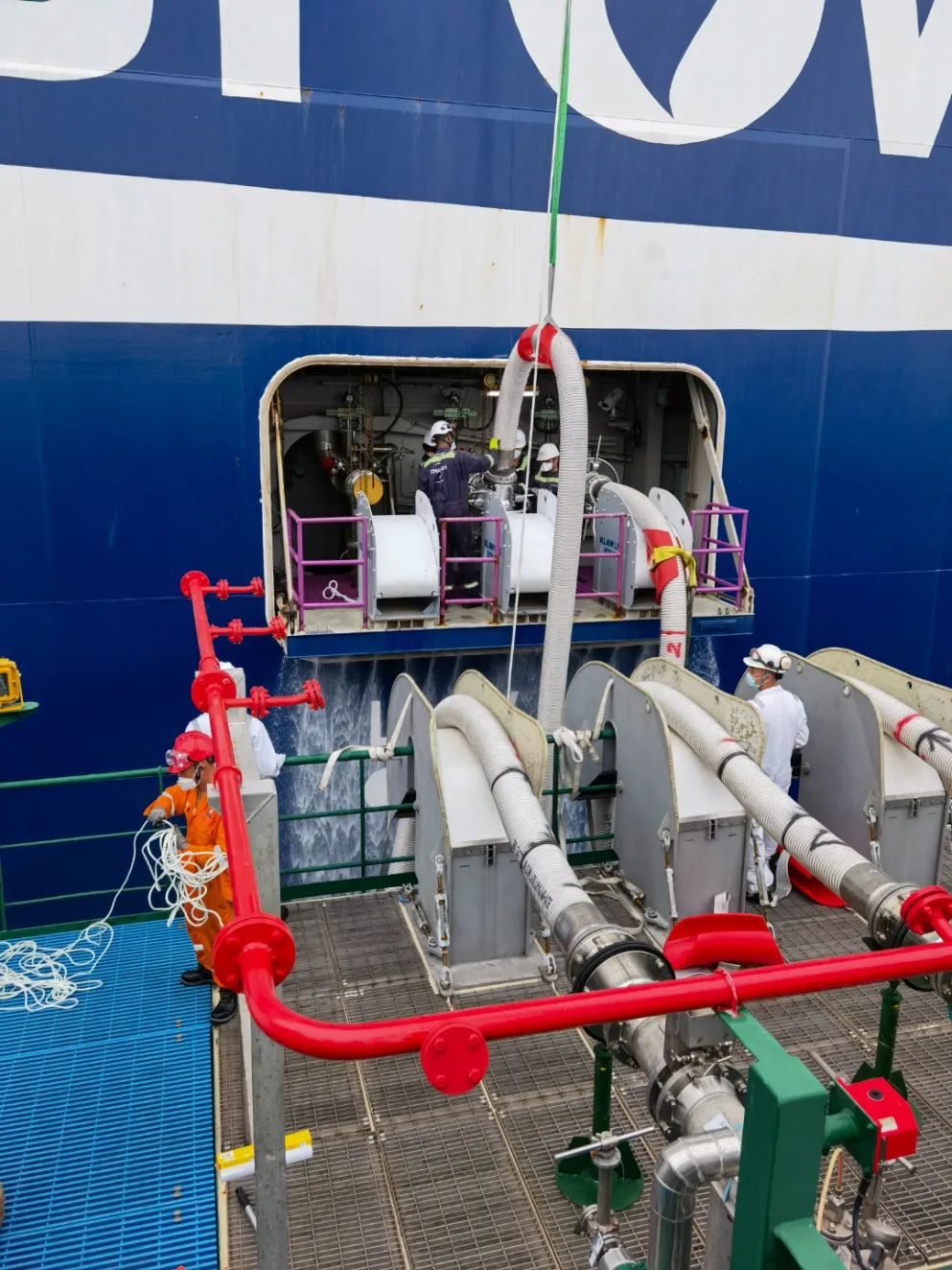 “新奥普陀号”首次加注作业同时也是首次卸货作业,结合这次加注作业,该船管理公司天津西南海运公司向深圳分社申请了首次卸货检验。