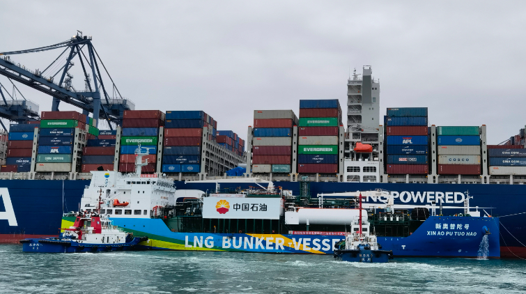 中国船厂自主研发设计和建造的国内首艘C型罐式专用LNG加注船,于2022年9月16日建造完工。该轮最大装载容积为8500立方米,注册在深圳船籍港,入CCS船级,是首艘满足CCS《液化天然气燃料加注船舶规范》要求,并授予LNG Bunkering Ship 附加标志的船舶。该轮于9月20日离开大连船舶海洋重工船厂开始首航,9月23日在舟山新奥码头完成首次LNG装货作业,装载了近8000立方米LNG,期间由CCS浙江分社舟山办事处完成了首次装货检验,随后开往深圳盐田港为集装箱船舶进行LNG加注作业。