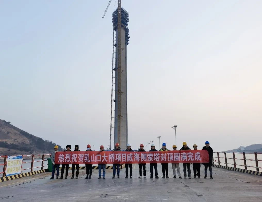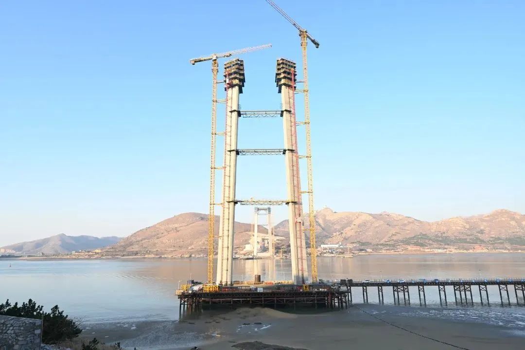 【山东】山东省最大跨径跨海悬索桥——乳山口大桥威海侧索塔封顶