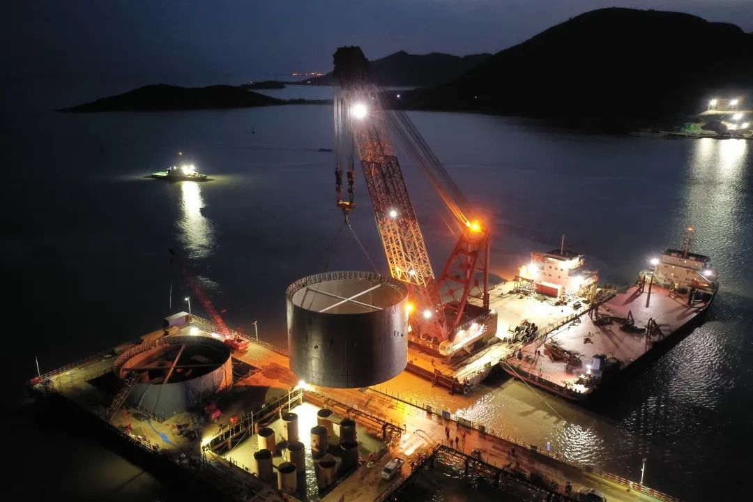 图 | 钢套箱成功下放就位