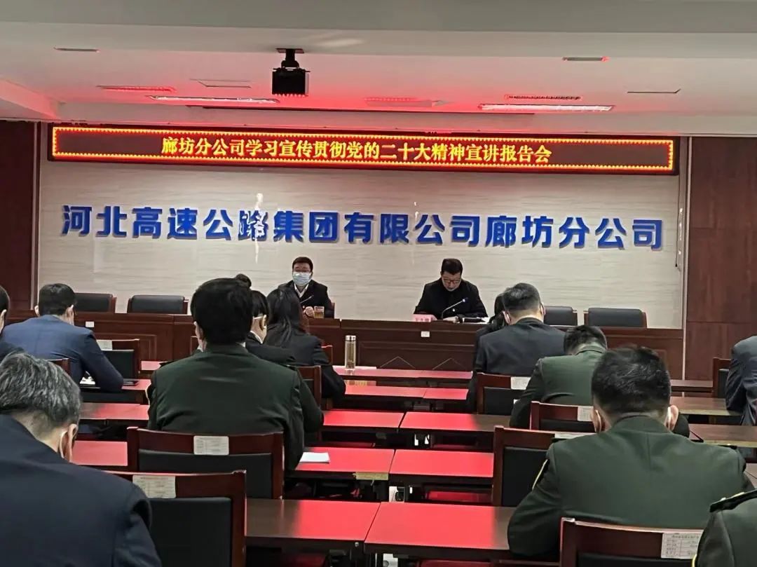 会议强调,全体干部职工要把学习宣传贯彻党的二十大精神作为当前和今后一个时期的首要政治任务,要以此次宣讲报告会为契机,进一步在分公司掀起学习宣传贯彻热潮。要提高政治站位,深刻理解党的二十大的重大历史意义,深刻领悟“两个确立”的决定性意义,进一步加强学习宣传贯彻党的二十大精神的组织领导,各级领导干部要发挥带头作用,把学习宣传贯彻工作延伸到基层支部、全体党员、职工群众;要坚持全面覆盖,既要整体把握、全面系统,又要突出重点、抓住关键,进一步营造学习宣传党的二十大精神的良好氛围;要突出践行见效,围绕推动企业高质量发展这一主题,聚焦主责主业,把党的二十大的部署和要求落实到运营管理、工程建设、党的建设等各领域各环节,全力推动党的二十大各项决策部署在廊坊分公司落地见效,努力推进廊坊分公司高质量发展新局面。