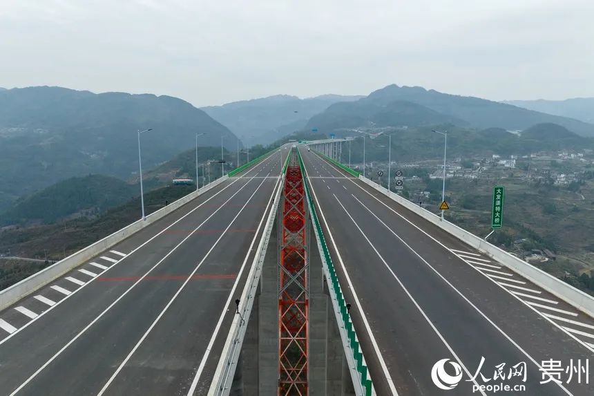 大发渠特大桥位于“七一勋章”获得者、时代楷模黄大发的家乡——遵义市播州区平正仡佬族乡团结村。大桥全长1427米、主跨410米、桥宽33米,是预应力混凝土先简支后结构连续T型梁及上承式钢管混凝土拱桥,整座桥重量超过当前“世界最大跨径上承式钢管混凝土拱桥”的大小井特大桥。