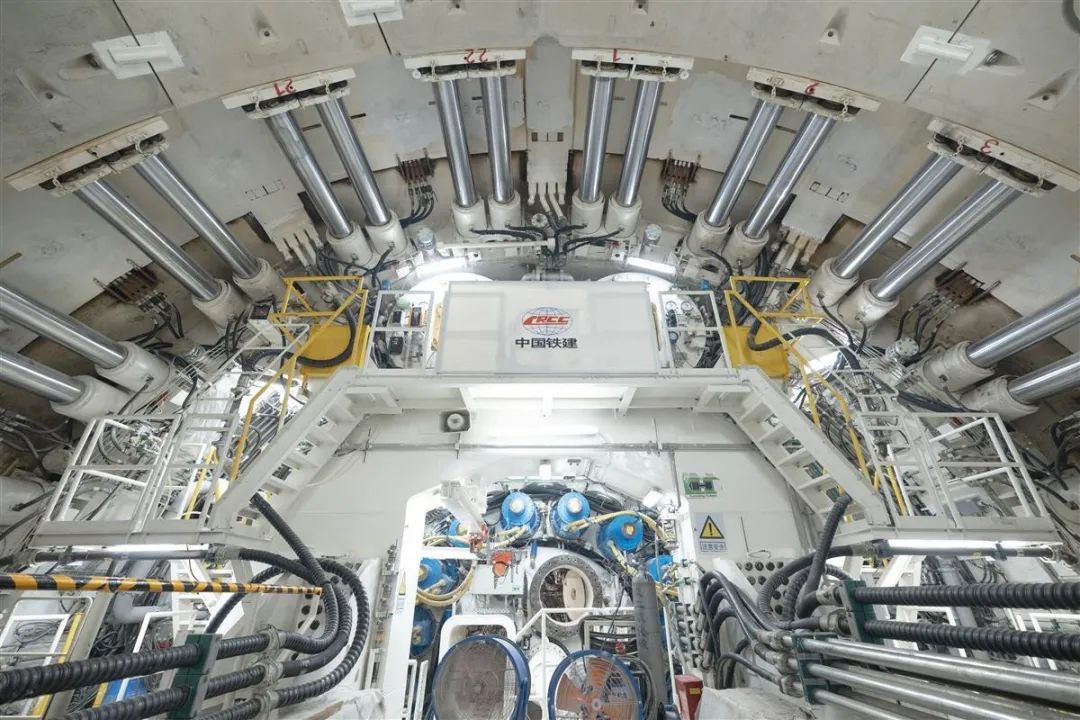 刀盘缓缓转动,管片拼装机熟练抓起、移位、旋转、拼接,随后撑靴进行顶靠完成拼装,整个过程如行云流水般顺畅……