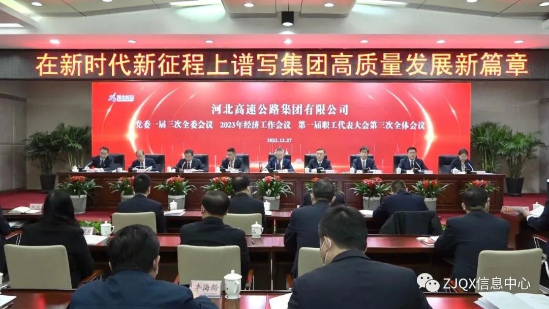 2022年12月27日,我会理事单位河北高速集团召开党委一届三次全委会议、2023年经济工作会议、第一届职工代表大会第三次全体会议。集团公司党委书记、董事长张建公出席会议并讲话,党委副书记、副董事长、总经理杨荣博,专职外部董事吴晓辉,党委副书记、董事、工会主席董广出席会议,党委常委、纪委书记、监察专员刘继承主持会议,副总经理崔士伟、韩玉祥,总工程师张宏君,副总经理、总法律顾问韩澄宇出席会议。