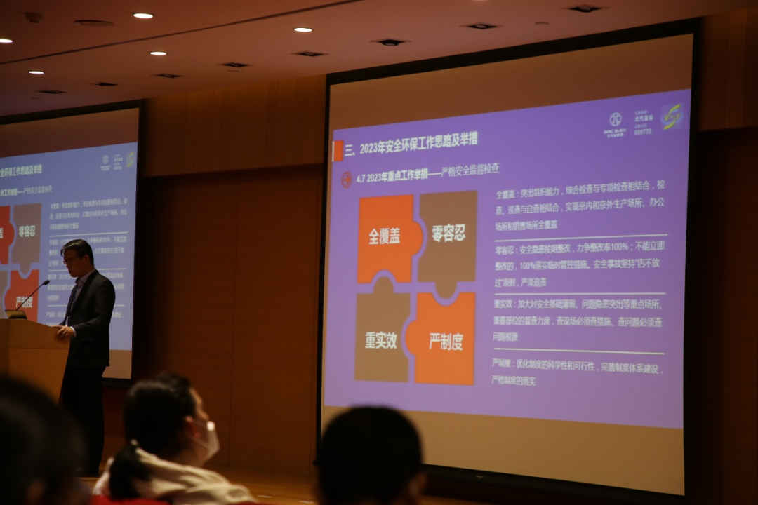 会上,公司办公室主任万金朋作2023年度安全环保工作报告。报告指出,面对2022年严峻复杂的疫情形势,公司科学统筹安全环保、疫情防控和生产经营工作,顺利完成了年度安全环保各项指标,实现了安全与生产两不误。报告分析了当前公司安全环保管理工作中的机遇和风险;提出了2023年安全环保目标、安全环保工作指导思想、“13345”安全环保工作思路以及重点举措。