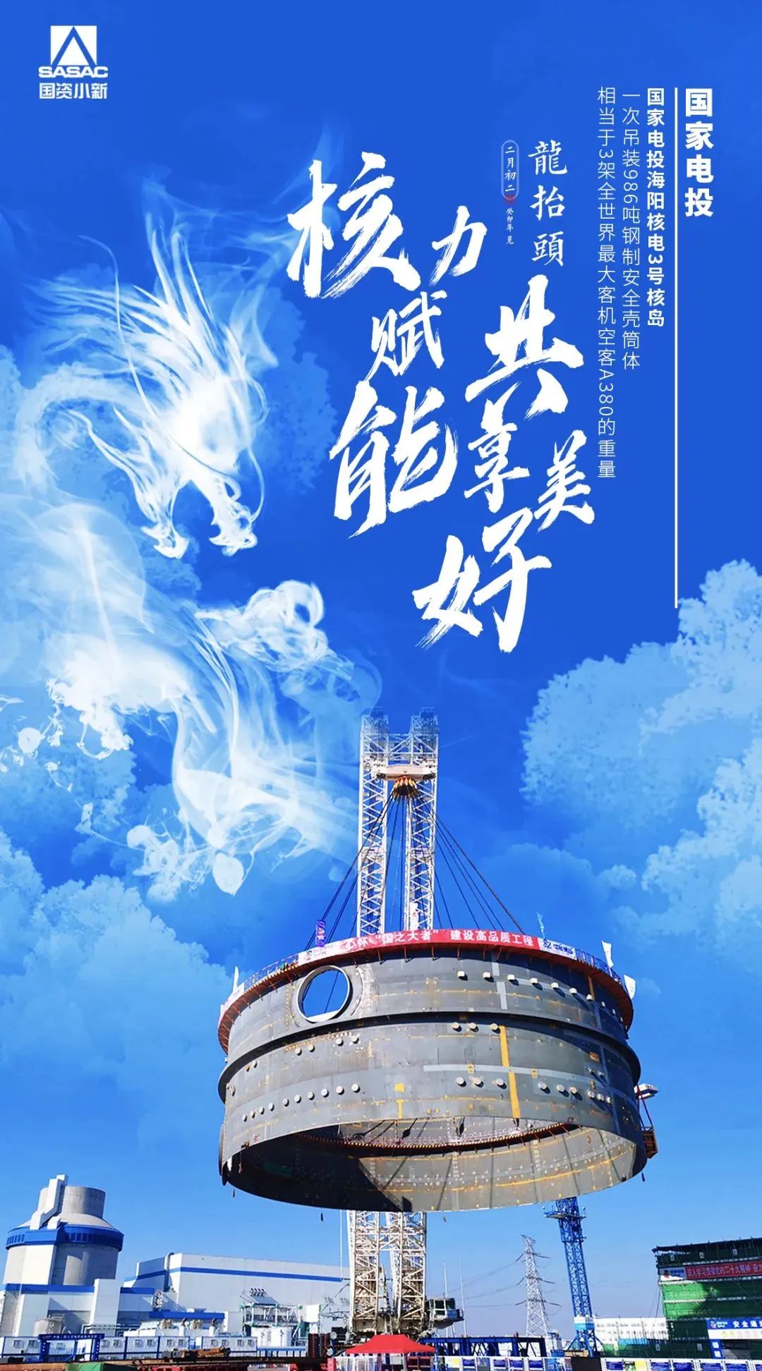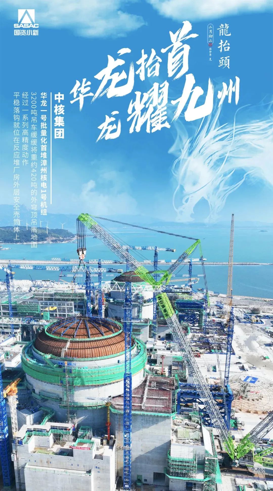 平稳落钩就位在反应堆厂房外层安全壳筒体上