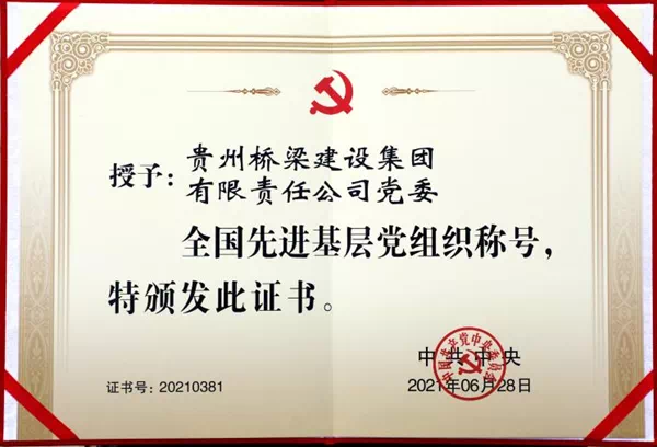 2021年7月,在庆祝中国共产党成立100周年之际,荣获“全国先进基层党组织”光荣称号