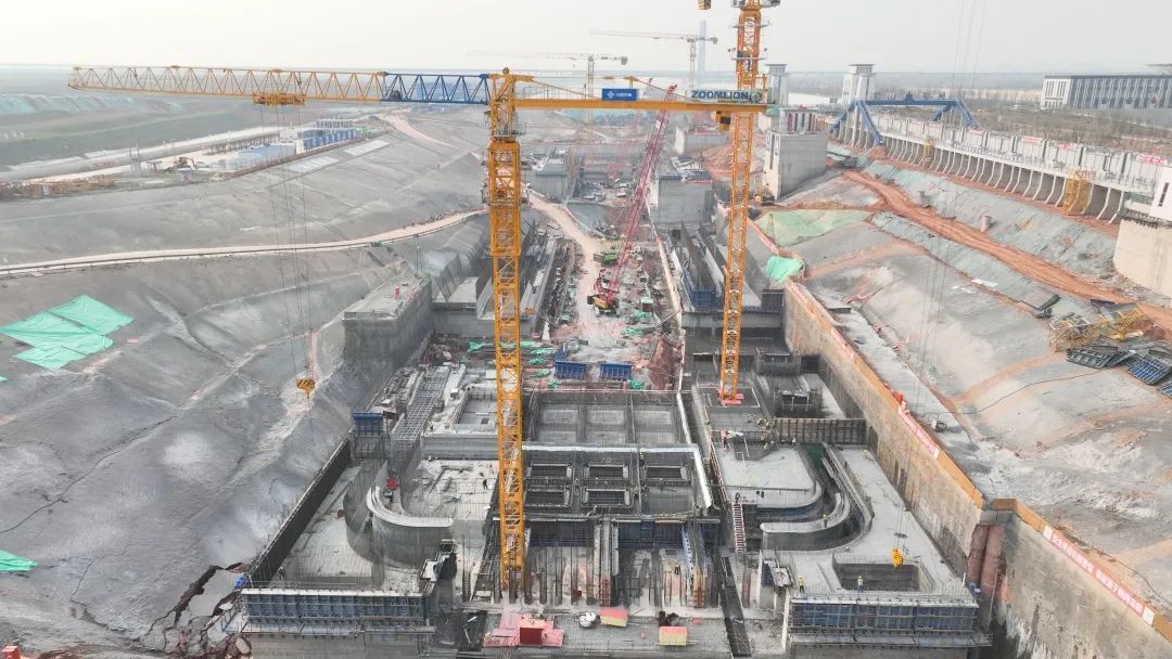 在淮河航道临淮岗复线船闸工程,通过梳理重点难点工作环节,优化调整施工方案、精准组织调遣设备,压茬推进各项工作。