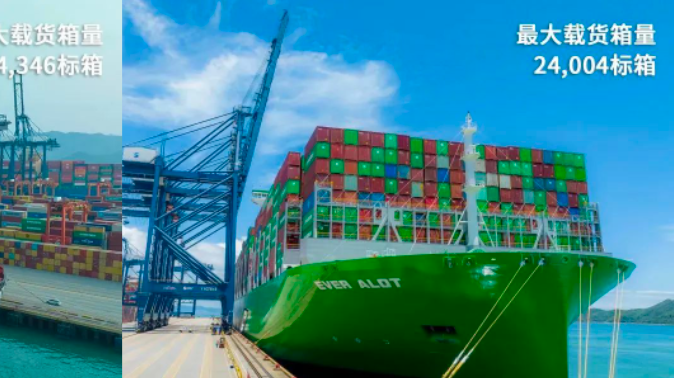 短短22天内,4条超大型船舶首航盐田港,先后3次打破盐田港最大集装箱船的靠泊纪录,盐田港也成为华南装载出口箱量之冠。