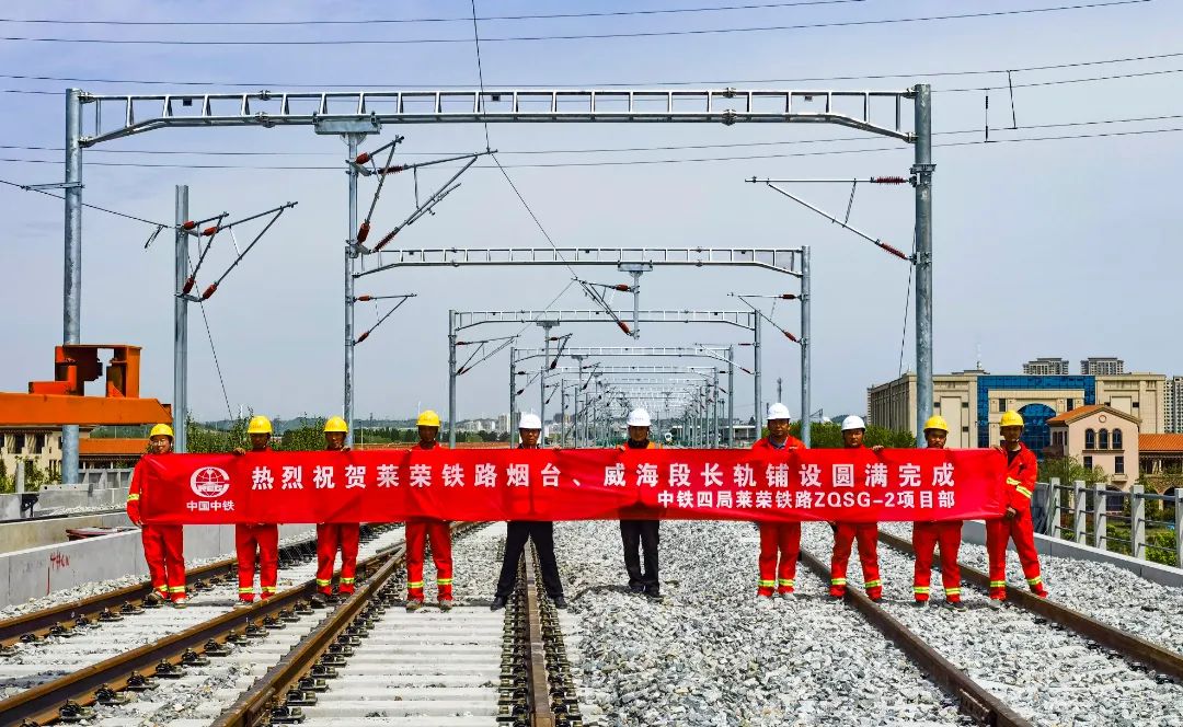 5月10日,莱荣铁路烟台、威海大里程方向长轨铺设圆满完成,顺利实现与荣成站内既有道岔的连通,朝着莱荣铁路开通目标迈进了一大步。莱荣铁路位于山东省胶东半岛南部沿海地区,是一条连接青岛莱西市和威海荣成市的高速铁路,正线全长192.814公里,设计时速350公里,建成后将与潍莱高铁、青荣城际共同构成环胶东半岛的快速客运通道。