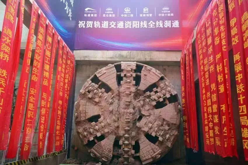 记者从中国铁建股份有限公司了解到,31日,随着“同城二号”盾构机刀盘破土而出,轨道交通资阳线宝台大道站—苌弘广场站盾构区间右线顺利“洞通”,标志着我国西南地区首条跨城轨道交通线路全线贯通,为线路开通运营奠定了坚实基础。