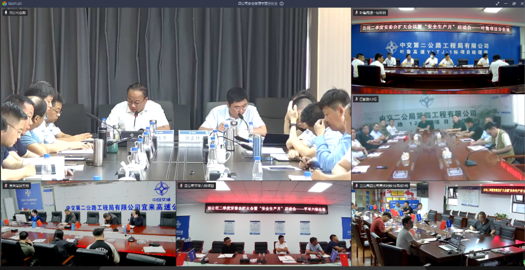 此次会议以“主会场+视频”的形式召开。公司领导、总部各部门负责人在主会场参会;公司各项目领导班子、部门负责人,安监人员在分会场参会。
