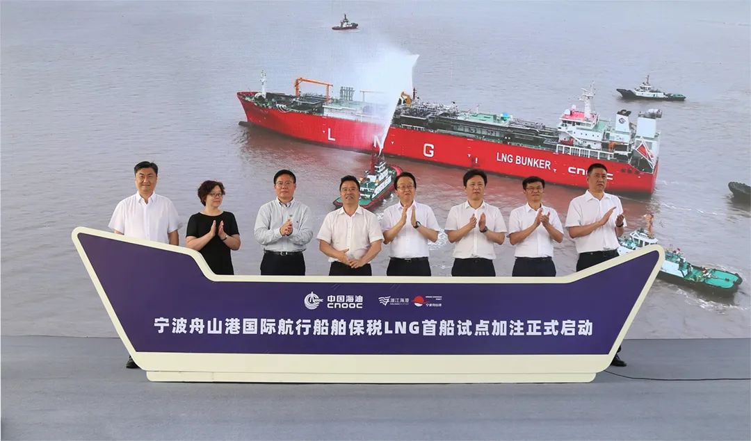 浙江省交通运输厅、宁波市商务局、宁波交通运输局、宁波边检、宁波市能源局、宁波市公安局港航分局等相关领导,以及浙江省海港集团、宁波舟山港集团、中国海油气电集团、达飞集团、浙能集团、宁波开投、浙江LNG等企业相关领导出席首单加注启动仪式。