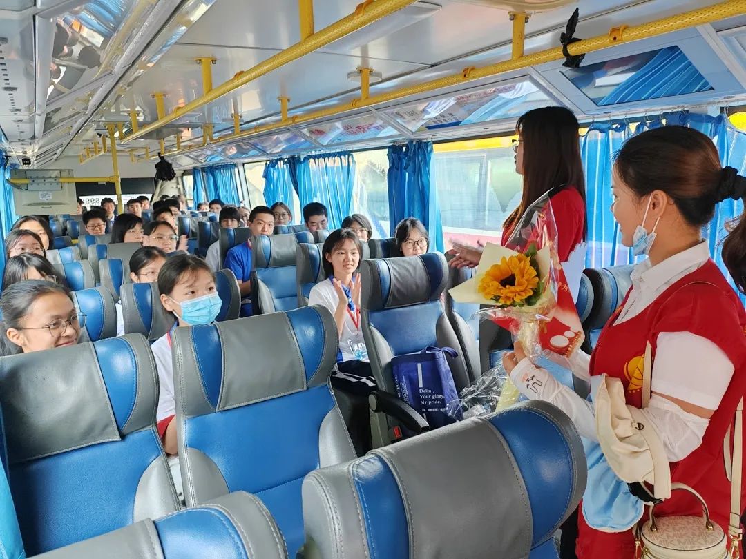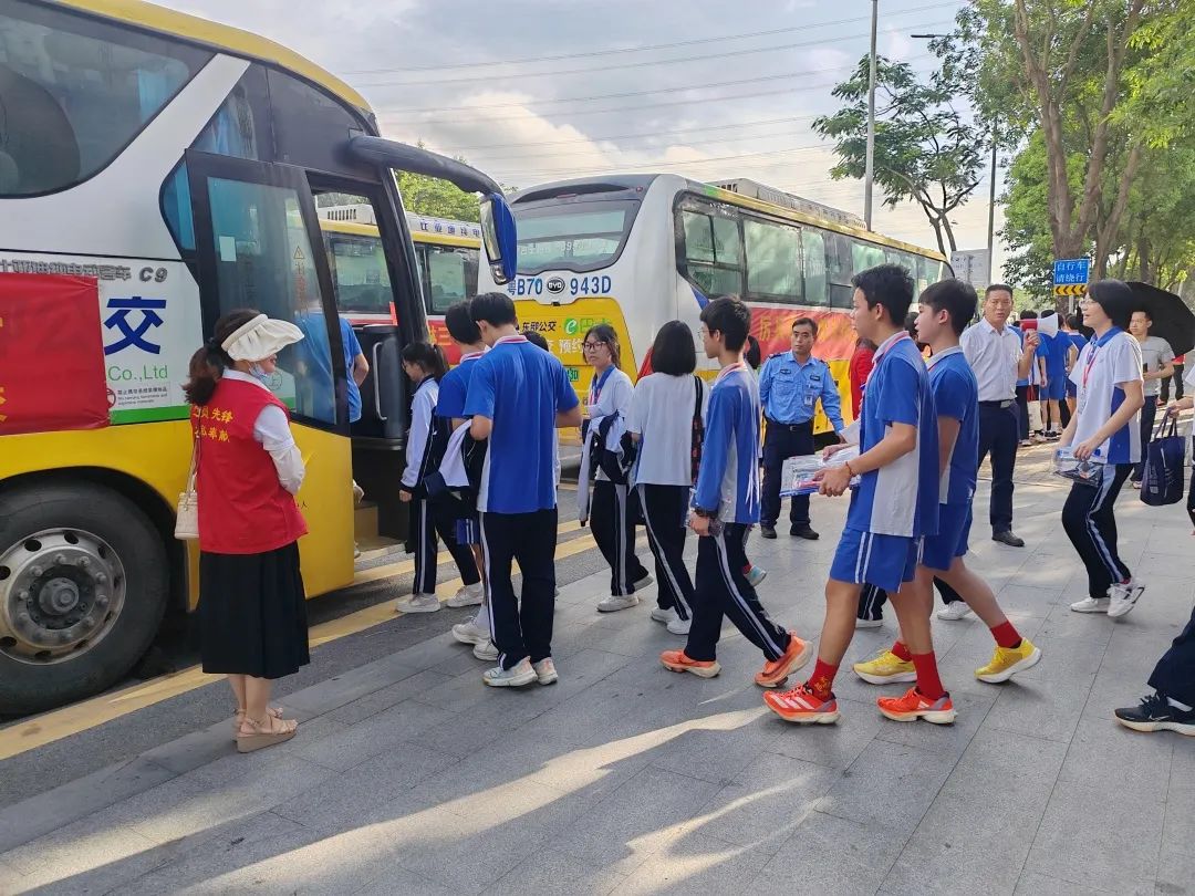 为保障学子们顺利考试,车队服务人员到学校现场指挥,引导学生安全有序上车,温馨提醒考生注意事项,为每位考生送上祝福。用暖心服务缓解他们的压力,鼓舞他们的士气。