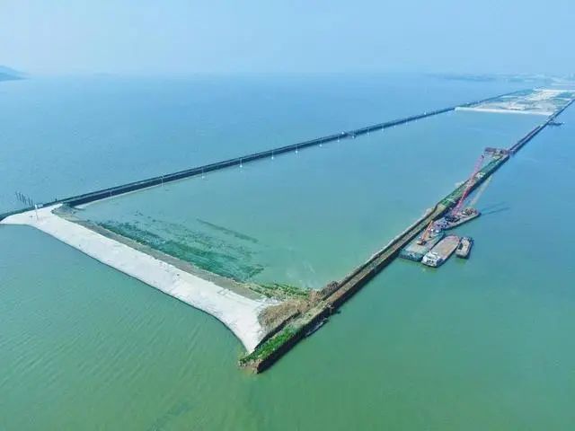 省道341线无锡马山至宜兴周铁段工程全长15.76公里,其中竺山湖隧道全长7.81公里,结构形式为两孔一管廊,两侧行车孔单孔净宽17.45米,隧道主体全宽44.1米,采用双向六车道一级公路标准建设,设计时速100公里,为全线控制性节点工程。竺山湖隧道无锡段长3.74公里,由东向西下穿竺山湖,在水域中心处与宜兴段合龙。施工采用“围堰明挖”法,从岸边向湖中逐段分仓推进,先使用钢围堰进行隔水,然后抽水进行隧道明挖施工,此后每完成一仓主体建设,便进行一仓回土、回水作业,逐仓恢复湖面。隧道顶板采取跳仓法施工,分节逐段浇筑,本节顶板长20米,宽35米,浇筑混凝土约1250立方米,浇筑时长约12小时。