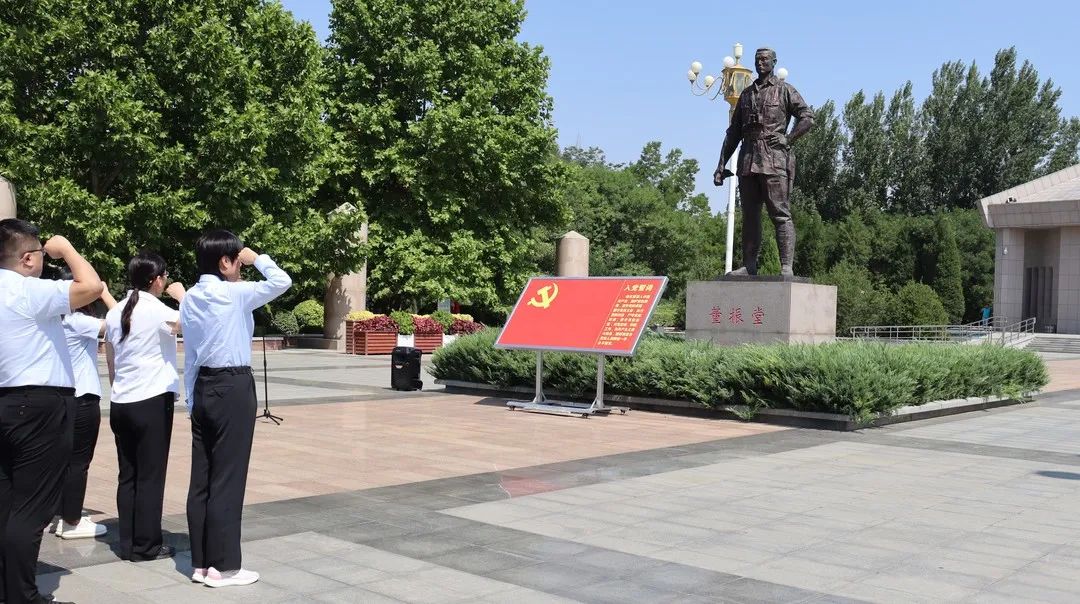 在董振堂将军铜像前,面对鲜红的中国共产党党旗,集团党支部书记、党务工作者举起右手,重温入党誓词:“我志愿加入中国共产党,......”铿锵有力的誓词,表达了党员们的庄严承诺和坚定决心,要牢记共产党员的政治责任和历史使命,永葆共产党员的政治本色。