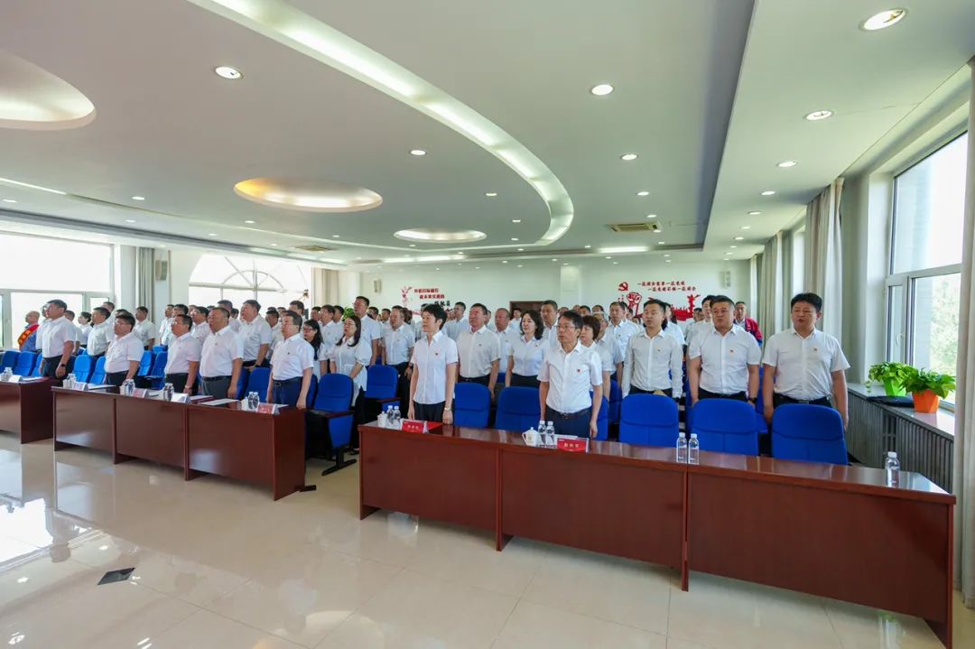 集团党委副书记、副董事长、总经理孙雪飞代表集团党委致辞,集团党委副书记、职工董事、工会主席赵阳宣读表彰决定,集团领导班子成员、专职外部董事出席会议。图 | 表彰现场会上,首先举行重温入党誓词活动,主会场和各分会场1200余名党员面向鲜红的党旗,再次庄严宣誓。新发展党员李卓桐和优秀共产党员主友波代表集团广大党员发言,表达了不忘初心担使命、奋楫扬帆新征程、为加快打造国际一流产业投资集团不懈努力奋斗的信心决心。