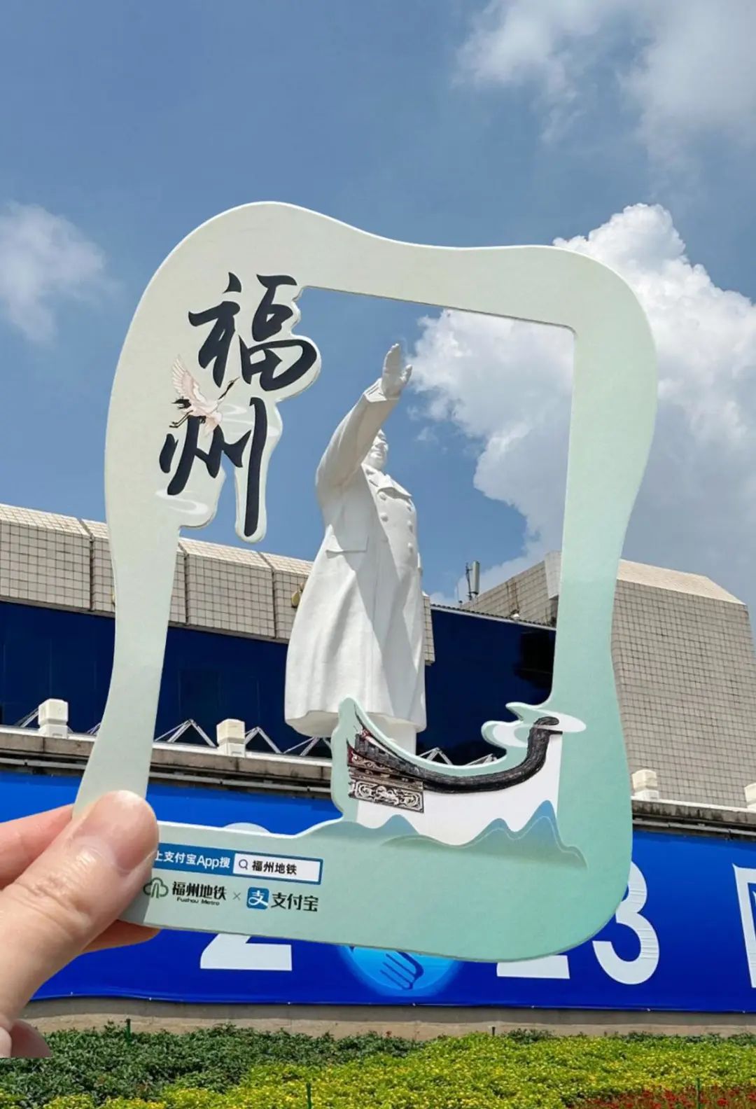 在福建福州,有许多乘客热衷手中拿着一张精美的相框在地铁打卡留影。这是源于福州地铁举办的“前橙似锦,绿色出行”主题活动。在活动期间,乘客可凭乘车记录领取合影框一张,使用合影框拍摄地铁沿线三个景点照片,将照片分享至社交平台,就有机会兑换一份精美礼包。