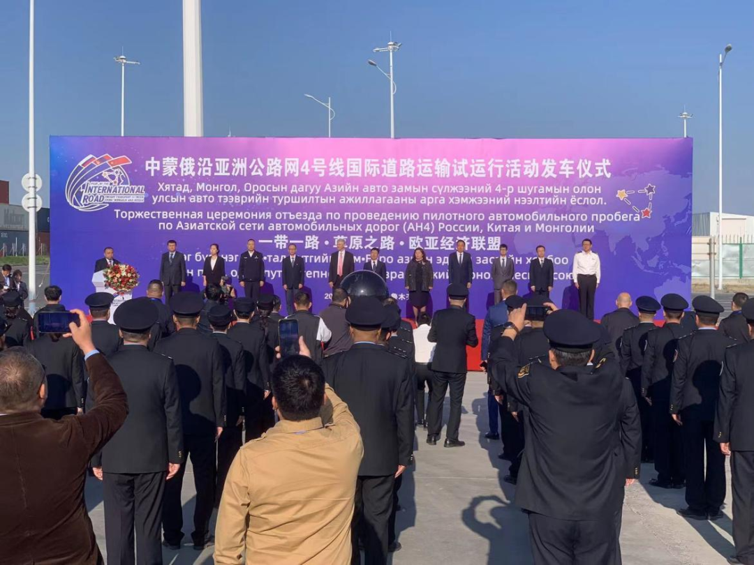 宣登殿在致辞时说,中蒙俄沿亚洲公路网4号线国际道路运输试运行活动,是推动“一带一路”倡议与俄罗斯“欧亚经济联盟”战略和蒙古国“草原之路”倡议对接、共建中蒙俄经济走廊的具体行动。本次试运行活动线路,是继AH3号线路后,开通的第二条连接中蒙俄三国的国际道路运输通道,将进一步促进区域内资源要素有序流动、资源高效配置、市场深度融合,为打造中蒙俄国际经济合作走廊发挥重要示范引领作用。