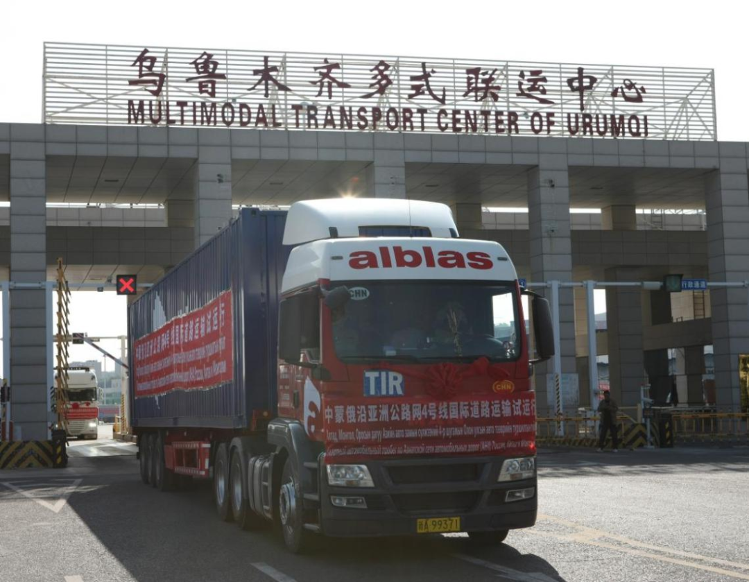 随着象征发车指令的圆球被点亮,中蒙俄三方各派出3辆国际道路货运车辆组成的试运行车队缓缓驶出乌鲁木齐国际陆港区多式联运中心,向塔克什肯公路口岸进发。