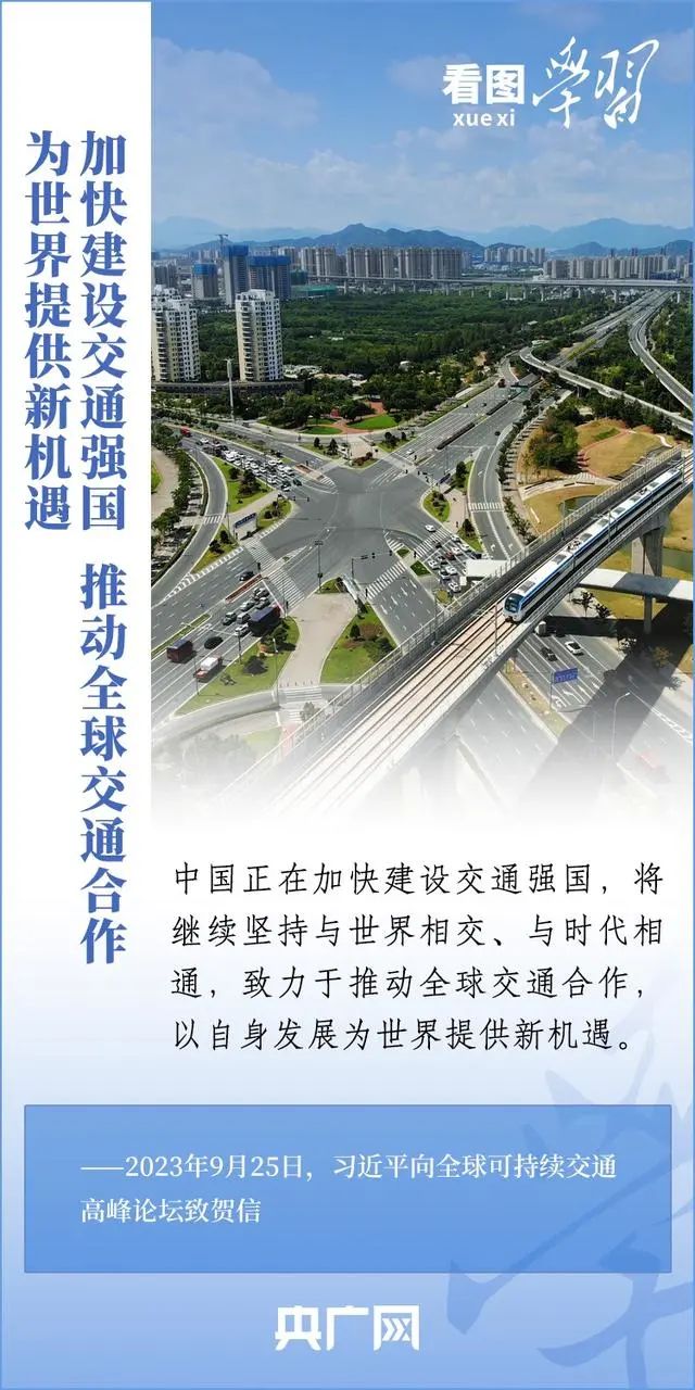 9月25日,以“可持续交通:携手合作助力全球发展”为主题的全球可持续交通高峰论坛在北京开幕。国家主席习近平致全球可持续交通高峰论坛贺信中表示,中国正在加快建设交通强国,将继续坚持与世界相交、与时代相通,致力于推动全球交通合作,以自身发展为世界提供新机遇。