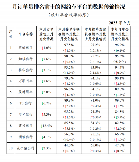 网约车监管信息交互系统发布2023年9月份网约车行业运行基本情况