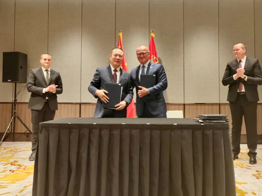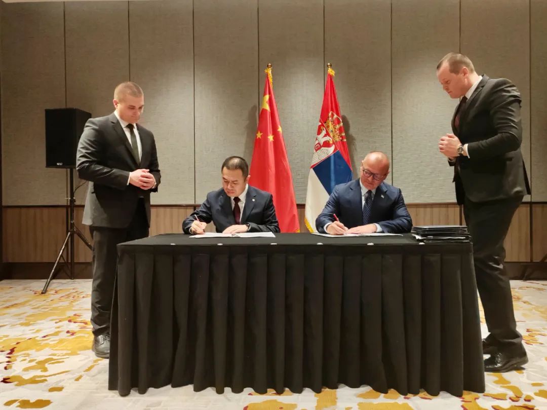 △中车长客股份公司总经理刘长青与塞尔维亚建设、交通和基础设施部部长戈兰·韦西奇 (Goran Vesic)签署塞尔维亚高速动车组车辆采购商务合同。