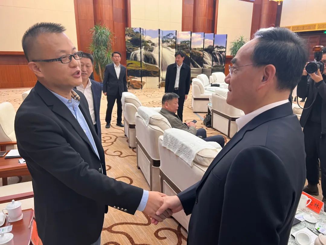 近日,全国 30 余家优强企业组团赴黔考察调研,贵州省委书记、省人大常委会主任徐麟,贵州省委副书记、省长李炳军,省政协主席赵永清在贵阳会见考察团一行。我会副会长、GIT分会常务副会长国联股份董事、高级副总裁王挺受到贵州省委书记、省人大常委会主任徐麟亲切会见。
