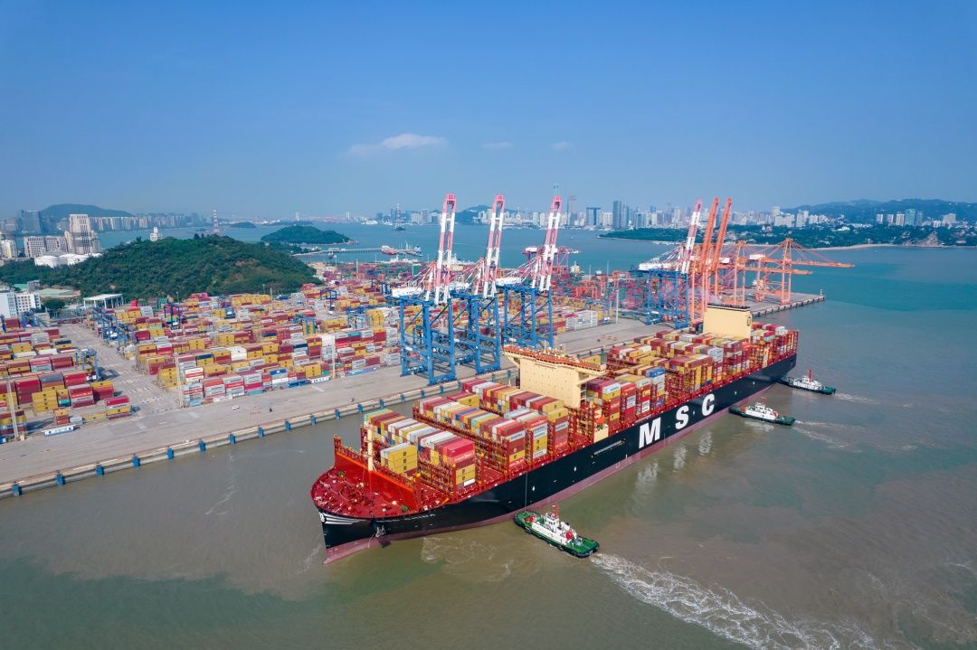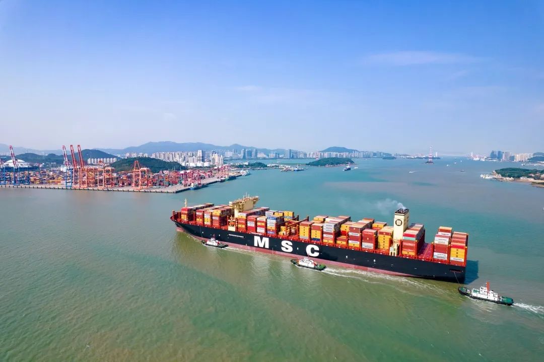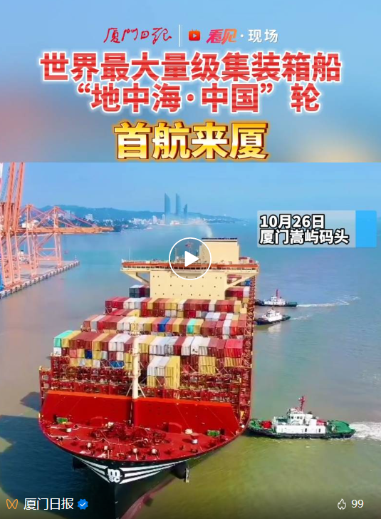 10月26日,航运巨头地中海(MSC)旗下一艘世界最大量级集装箱船——“地中海·中国”号(MSC CHINA)处女航到访厦门港。