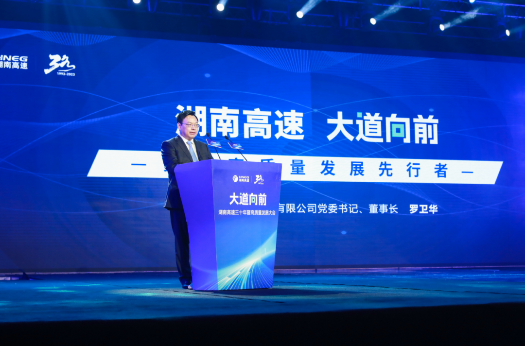 9月28日,湖南高速三十年暨高质量发展大会在长沙举行。湖南省高速公路集团有限公司党委书记、董事长罗卫华发表题为《湖南高速 大道向前 勇当高质量发展先行者》主旨演讲,回顾湖南高速30年的发展历程,展望新征程企业高质量发展的努力方向和奋斗目标。现将全文刊发如下。