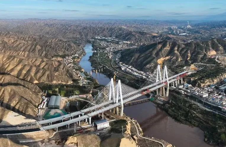 清傅公路桑园子黄河大桥,位于甘肃省兰州市榆中县和平镇的桑园子峡谷,是G312线上海至霍尔果斯公路清傅项目的重点控制性工程。孟瑞/摄