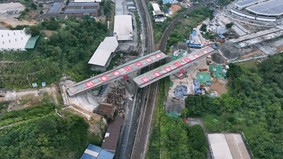 高空“二人转”!国内最大纵坡双幅转体桥梁成功转体