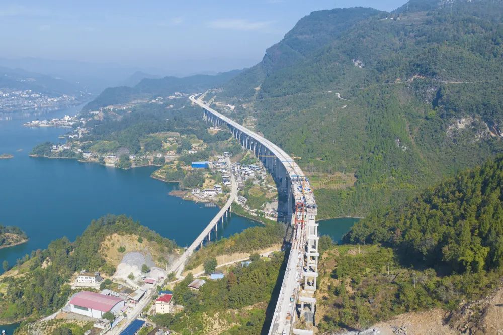 渝湘复线高速公路建设有了新进展——11月20日,历经998天奋战,渝湘复线高速公路彭酉路鱼梁溪特大桥连续梁左幅顺利合龙,标志着渝湘复线高速彭酉路建设进入冲刺阶段,为全线通车奠定了坚实基础。