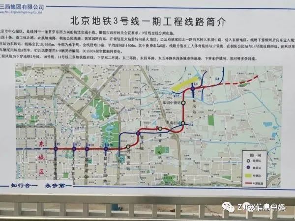 北京地铁3号线一期工程西起东四十条,沿工体北路、朝阳公园南路向东,至姚家园路向北转至北京朝阳站,之后一路向东进入东坝地区,终点站为东风站。线路全长15.6公里,全部为地下线,共设车站10座,其中换乘车站6座。