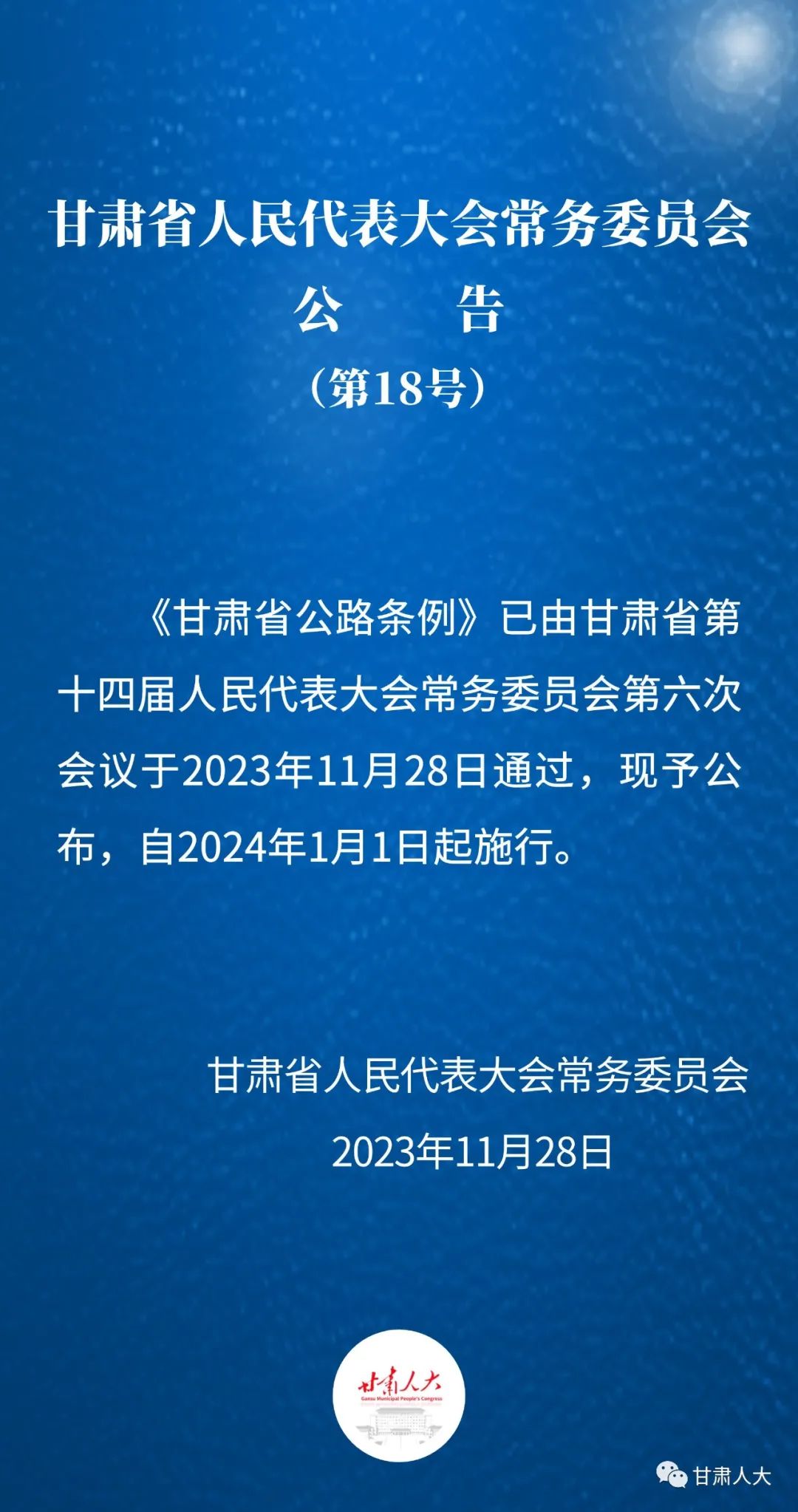 《甘肃省公路条例》自2024年1月1日起施行(附全文)