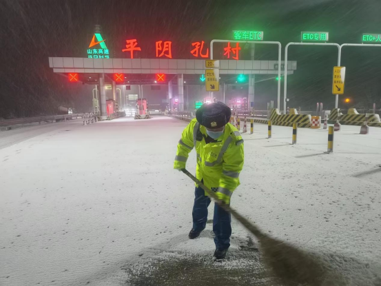 ⭕ 泰东运管中心平阴孔村收费站工作人员清扫广场积雪。